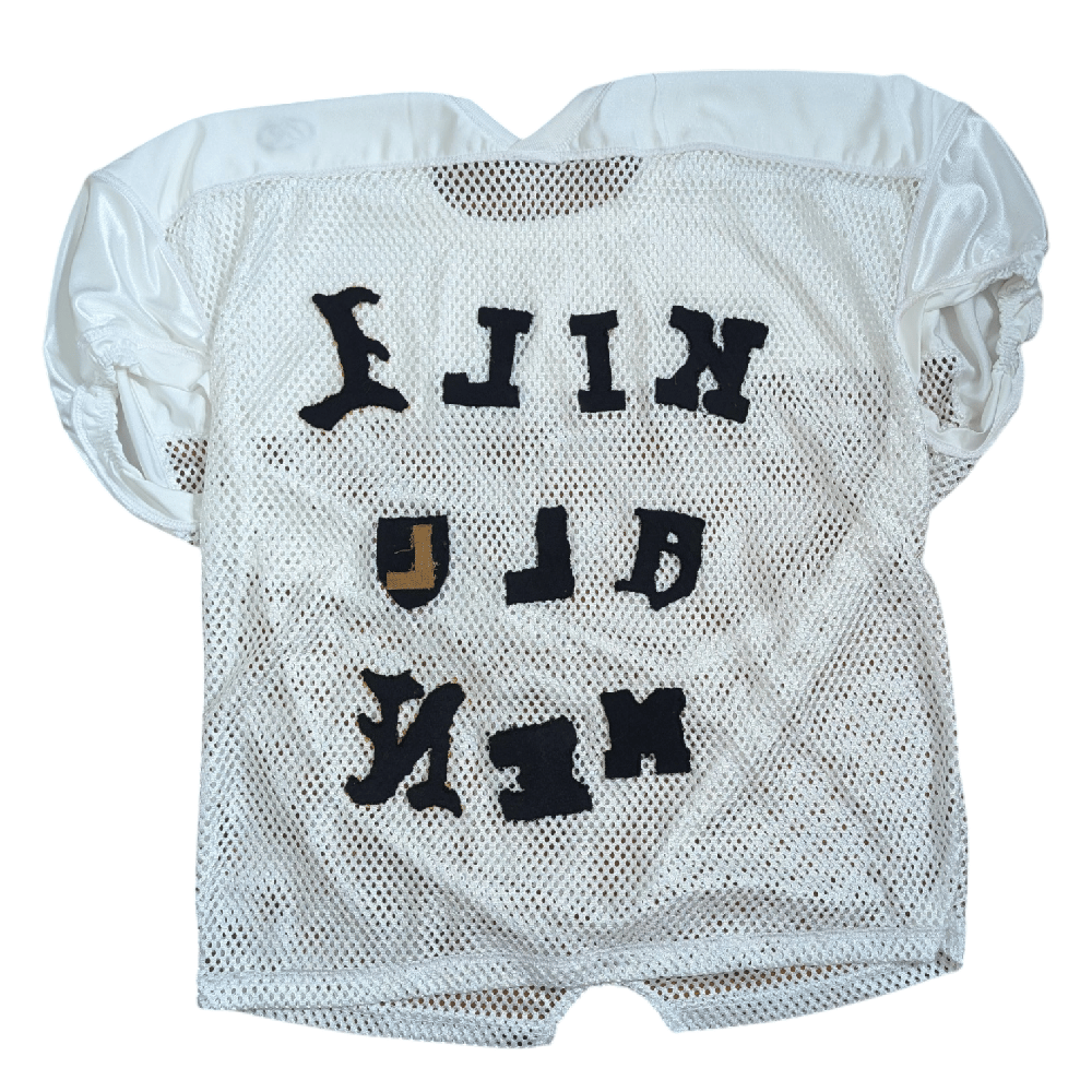 Made from a second-hand jersey and almost all vintage patch letters (I had to buy a couple new letters *cry*). For a more subtle "kill All men", wear it inside out and it will read correctly when you're looking in a mirror.